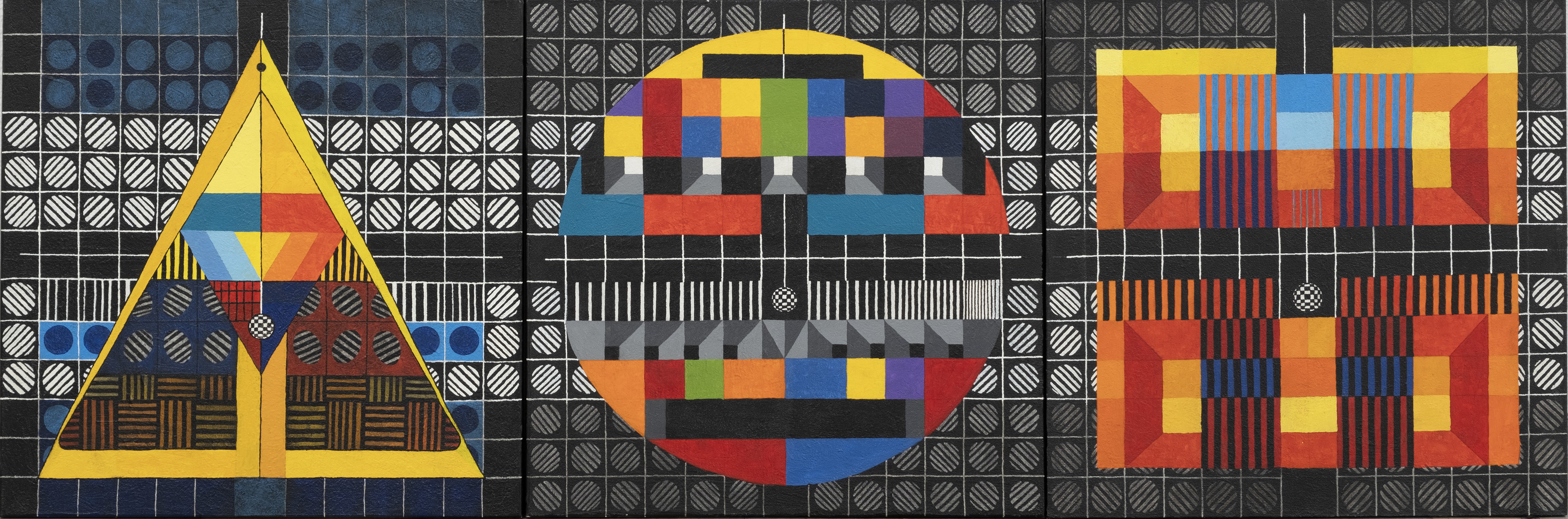 Pentru lucrarea: Mantra, 2025, t. mixtă, pânză, triptic 80x80 cm.