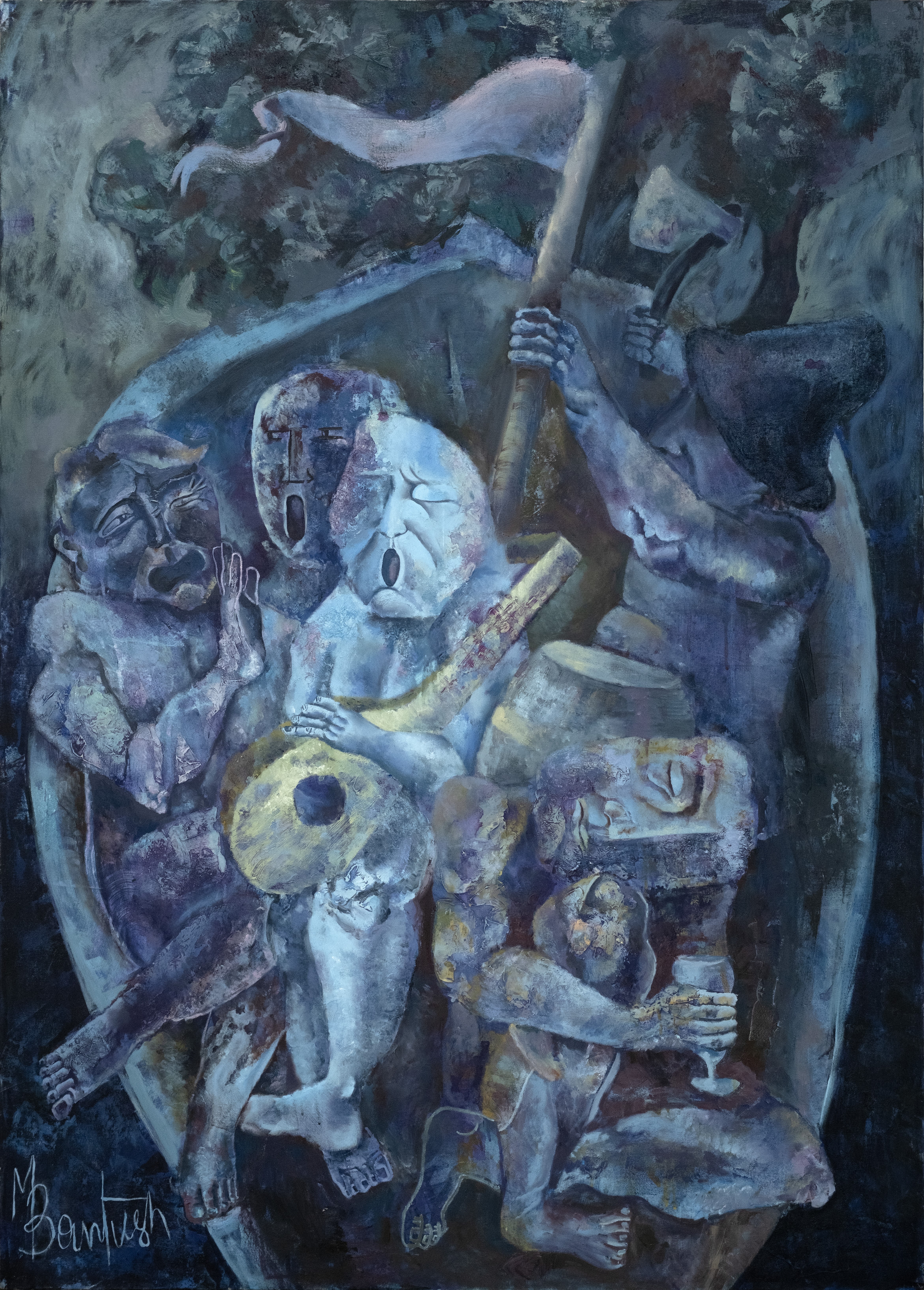 Pentru lucrarea: Corabia nebunilor, 2025, acrilic, ulei, pânză, 160x115 cm.